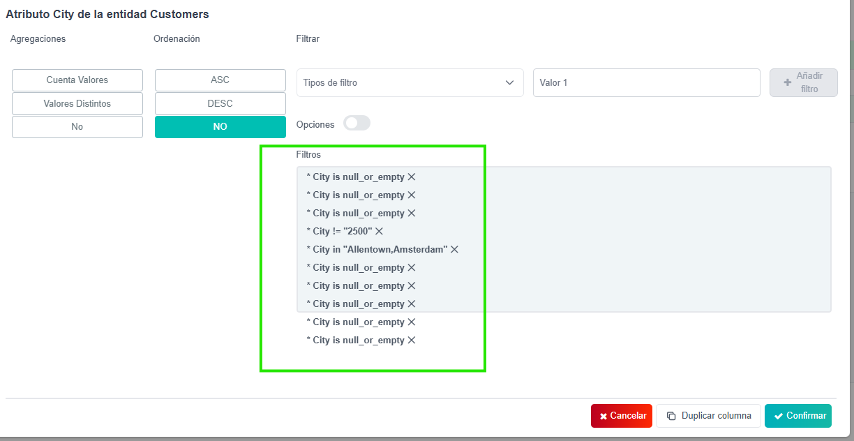 Cuando se agregan muchos filtros en la pizarra que recibe todos los filtros configurados, si son demasiados filtros, estos se salen fuera de la pizarra de filtros.